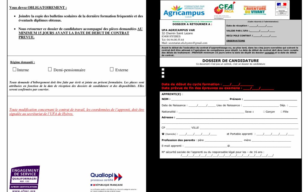 Dossier Pré-inscription AP CONTRAT Bac Pro 8 février 2022 Poster le commentaire Annuler la réponseVotre adresse e-mail ne sera pas publiée. Les champs obligatoires sont indiqués avec *Commentaire * Nom * E-mail * Site web