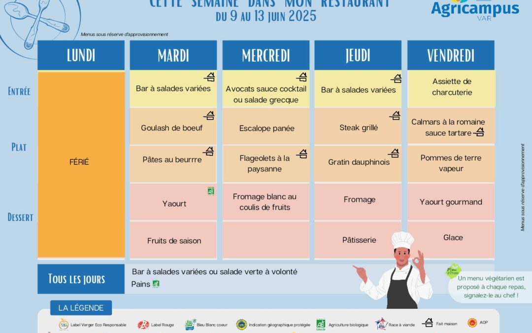 Menu hyeres 9 au 15 Juin 10 juin 2025 Poster le commentaire Annuler la réponseVotre adresse e-mail ne sera pas publiée. Les champs obligatoires sont indiqués avec *Commentaire * Nom * E-mail * Site web